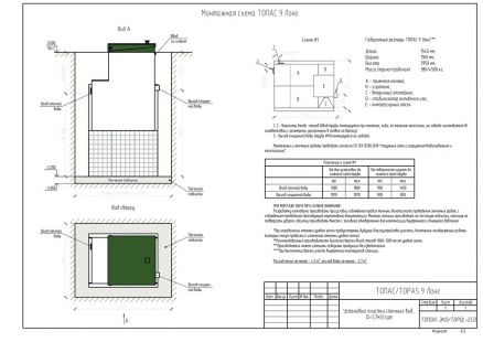 Автономная канализация Топас 9 Лонг обладает объемом залпового сброса 510 л. и производительностью 0.17 м3/сутки, что делает его подходящим для домов, в которых число жильцов не превышает 9 чел. Для нормального функционирования системы, в ней должно быть не более одной душевой, одного унитаза и двух раковин.